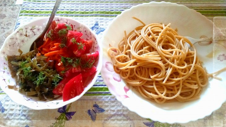 | Спагетти из цельнозерновой муки, приготовленные |