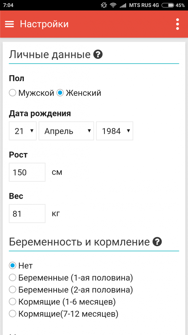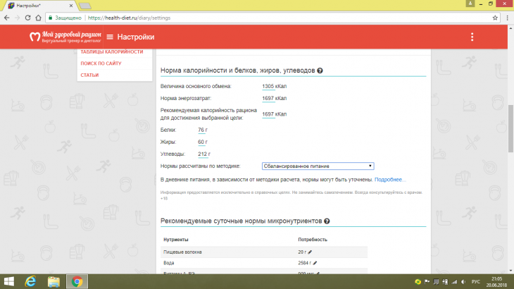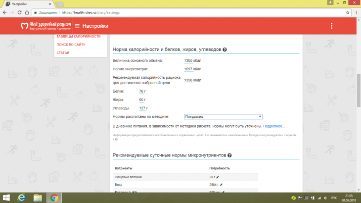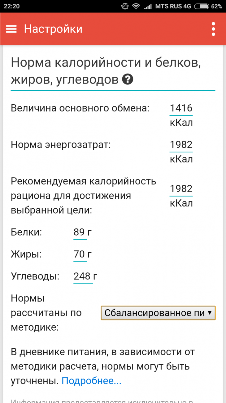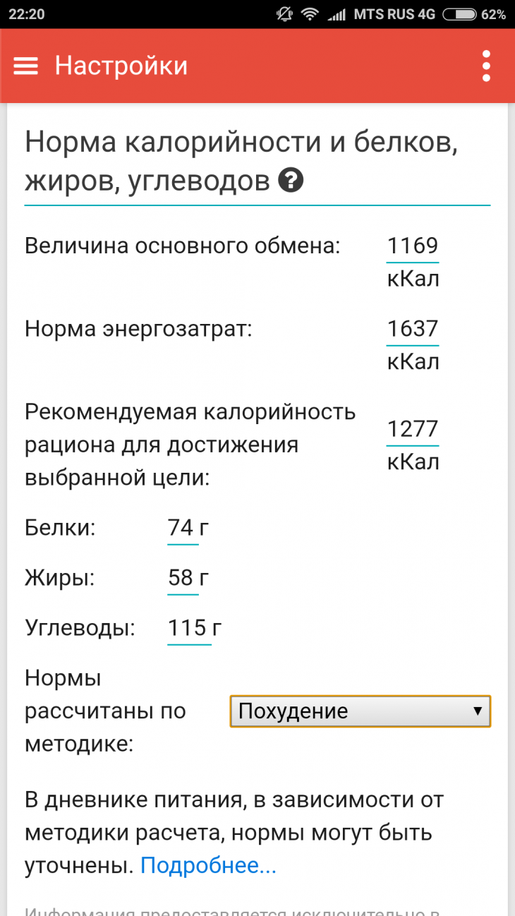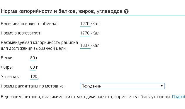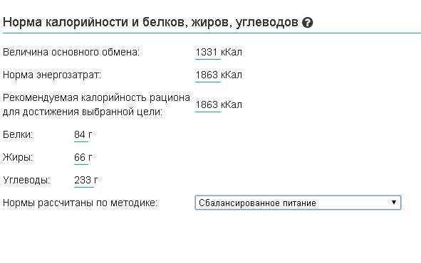 Инна написал:поставьте вличных данных "сбалансированное питание" и посмотрите основной обмен, потом переведите на "похудение" и снова гляньте