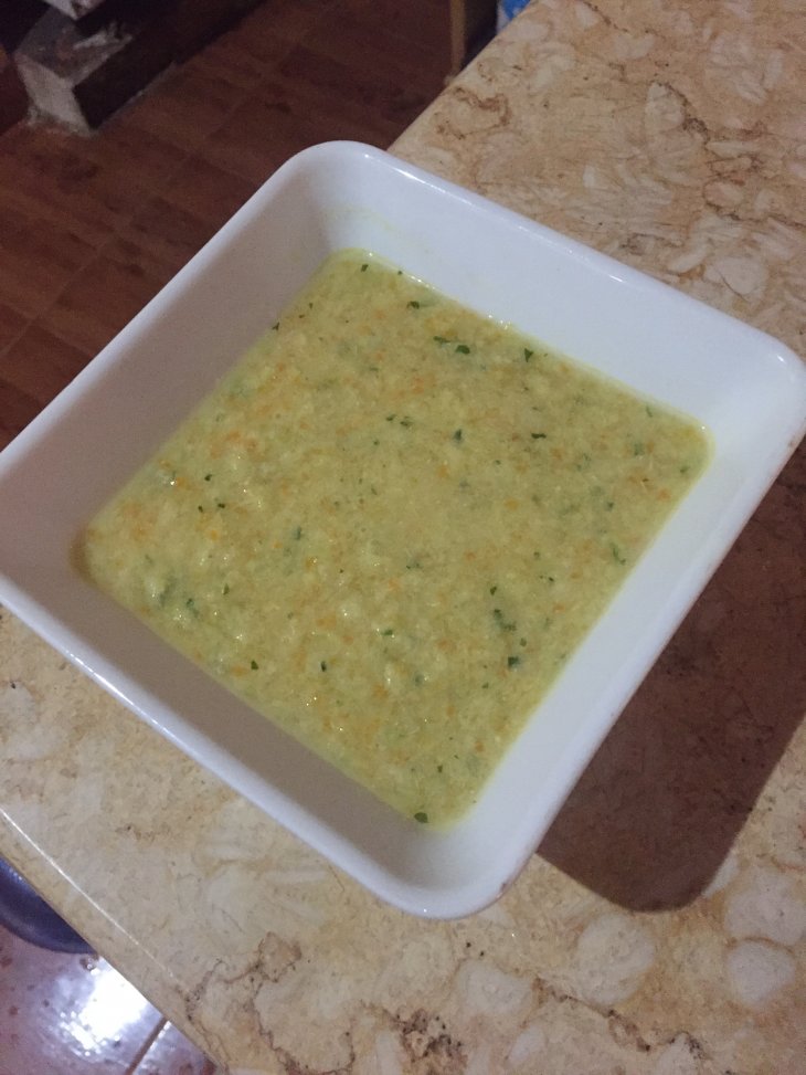 Куриную грудку отварить. Кабачки, морковь почистить, порезать, пассировать до готовности на масле. Добавить кинзу, курицу, бульон и взбить блендером. Проварить еще 15 минут. Приятного аппетита!