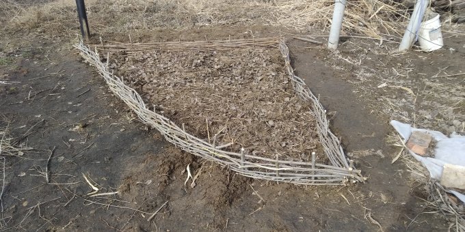 Сегодня вышла в огород, вынесла 10 вёдер мусора,смастерила грядку из веток мною спилинных деревьев, и красиво и практично, потом поливным шлангом не сломаю в ней чеснок, посаженный осенью. Жду посылку с агрофирмы с саженцами винограда и малины. Ещё и гладиолусы там.