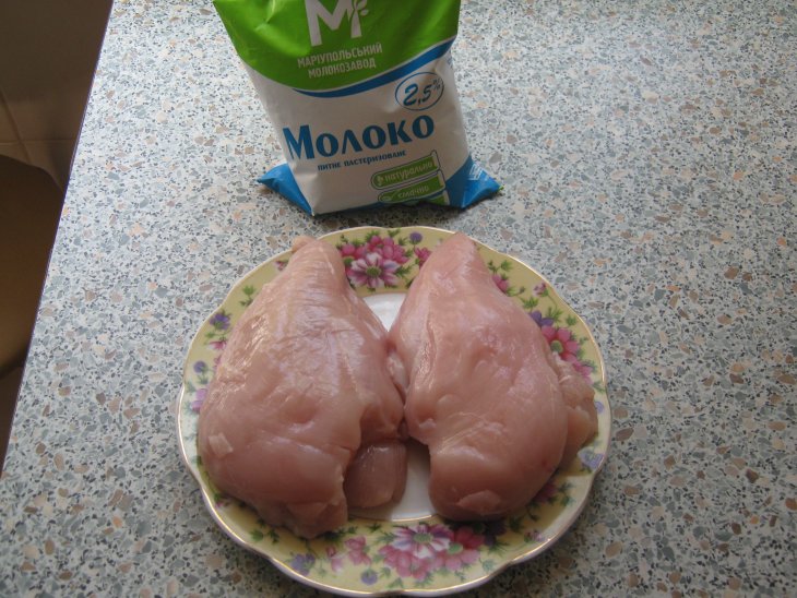 Филе куриное разрезаем на 2 половинки (если оно целое).