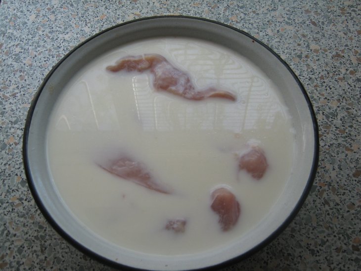 Кладем в миску и заливаем молоком. На 4 половинки достаточно 0,5