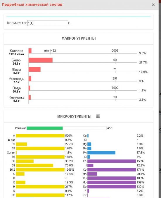 Если не корректировать вес, а оставить по калькулятору с учетом обработки, то калорий получается еще меньше