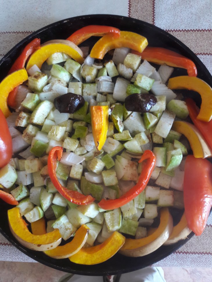 | Пицца, с мясом и овощами, на растущем корже, замороженная, приготовленная |