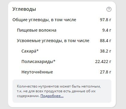 | Кол-во | Калории | Белки | Жиры | Углеводы | |