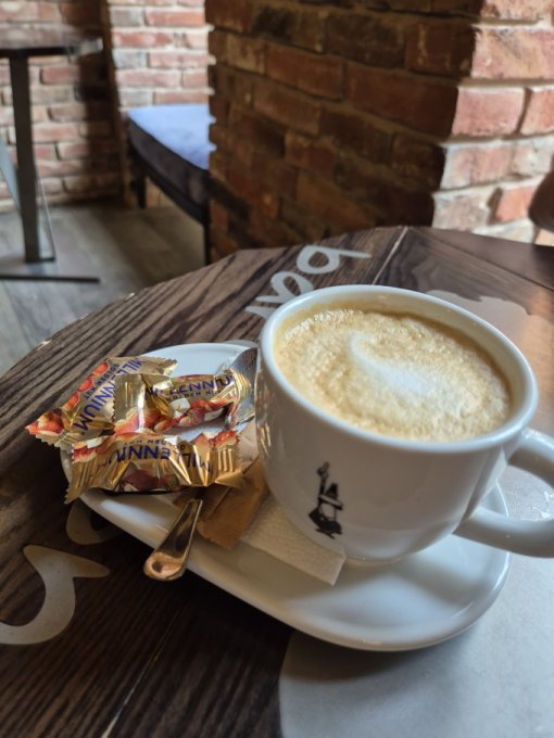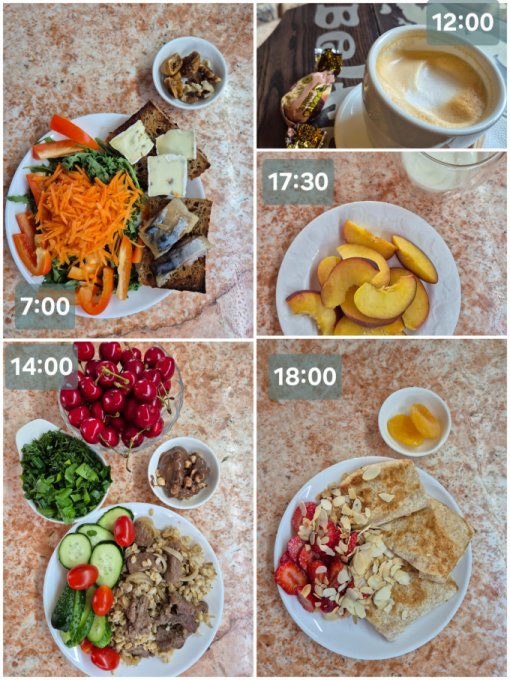 Завтрак и перекус до обеда как обычно: бутерброды с клетчаткой, капучино с конфетами.