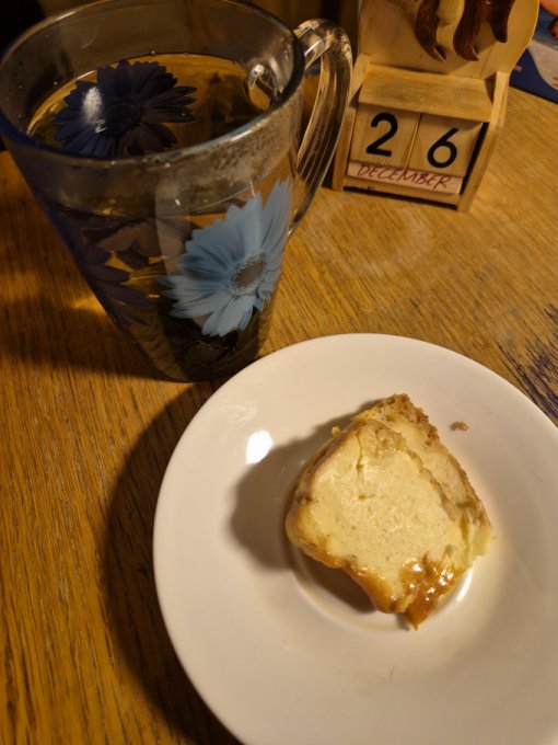 Попробовала дочкин крошечный пряник, съела половинку хурмы и выпила чай с ложкой варенья.