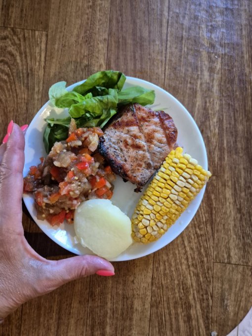 | Свинина, средняя часть филе на кости, постное мясо, жареная на огне |