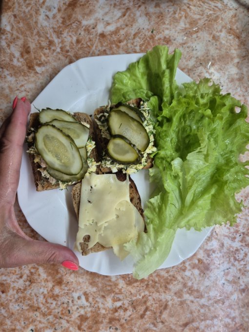 Утром были бутерброды с тресковой печенью и жареным яичным белком.