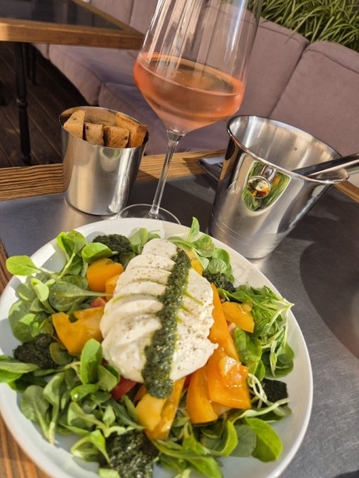 Ужинала с доцей в кафе. Салат с моцареллой, хлеб и чуть просекко. Соус песто был явно пересолен, сегодня +500г, не чувствую себя отёкшей, просто больше вес. 🤔 И чего это вокруг отёков такой кипишь раздувают, ну ничего страшного, просто временно больше воды в теле. Главное, чтоб недолго и давление было в норме.