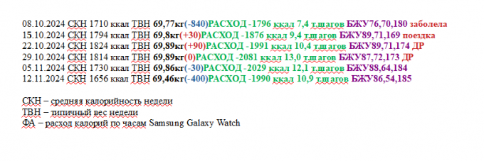 Получилось снизить недельную калорийность аж до 1656 ккал, ясное