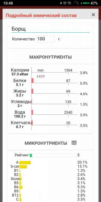| Пищевые волокна | 0.7 г | 3.5% | |