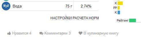 | Вода | 74.6 г | 3.28% | |