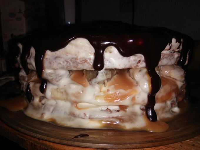 Ну так, кустарненько, хенд-мейд, но ровнять уже ничего не буду, 2 дня с созданием морочилась, на красоту времени не было.) Сметанник обычный, делаю много лет отсюда: https://forum.say7.info/topic8930.html , но с секретным ингредиентом.) На сей раз это бананы, обжаренные в масле со сливочно-карамельным соусом. Вечером расскажу, как это вкусно.