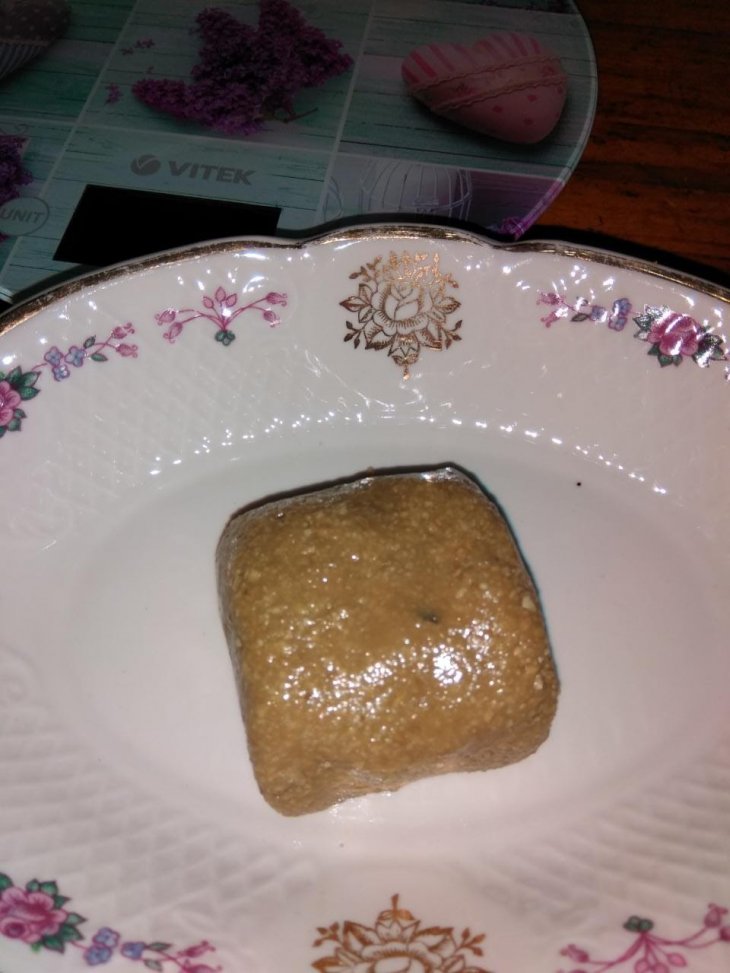 равно вкусная. Моя первая халва.)) Меда меньше, наверное, можно