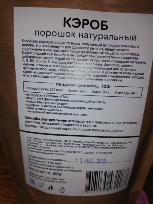 Поэтому кэроб с айхерба планирую тоже заценить, хоть этот взяла в