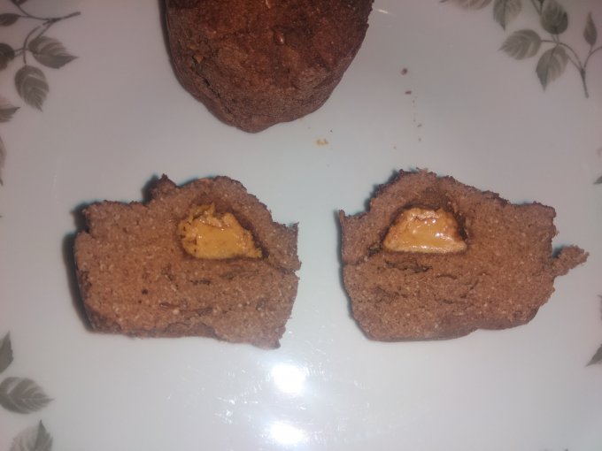 Импровизация на тему сегодняшнего рецепта. Яйцо, кокосовая мука, сметана, какао, немного семян льна. Внутри арахисовая паста закатана. Ещё горячие. Рискнем?)