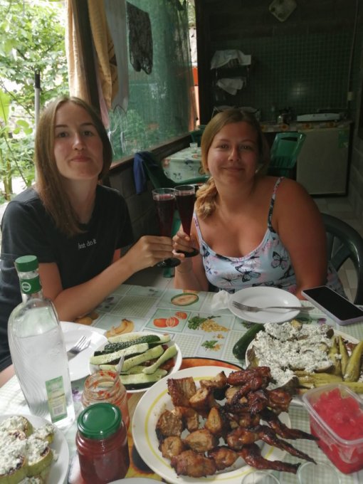 Приехали на место, нас встретила хозяйка, расцеловались, в