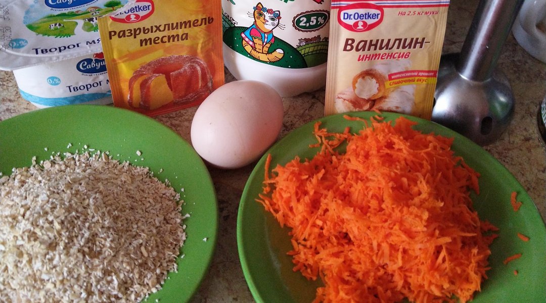 Морковь сырая, отруби овсяные, кефир, яйцо, разрыхлитель. Для коржа.