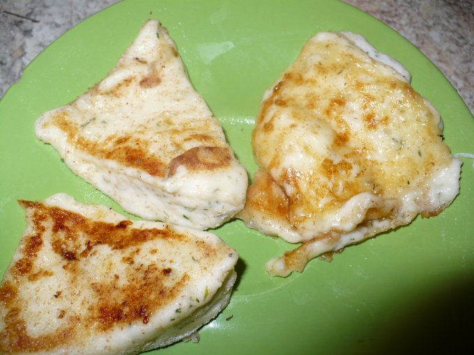 выложить сыр и слегка обжарить с двух сторон. Главное не дать ему