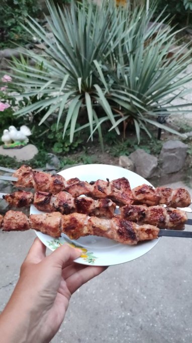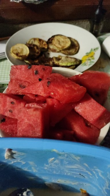 , это точно. Сегодня жарили шашлык, шампиньоны и кабачки. Водочка и арбуз местные