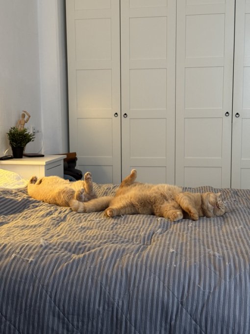 Наши котятки тоже себя так ведут))) У меня стоит несколько будильников с утра, просыпаюсь, как правило, только на третий звонок. Раньше третьего будильника кошаки меня не трогают, просто молча сидят у кровати. А вот позже - проспать не дадут, орут в два голоса и лезут на кровать.