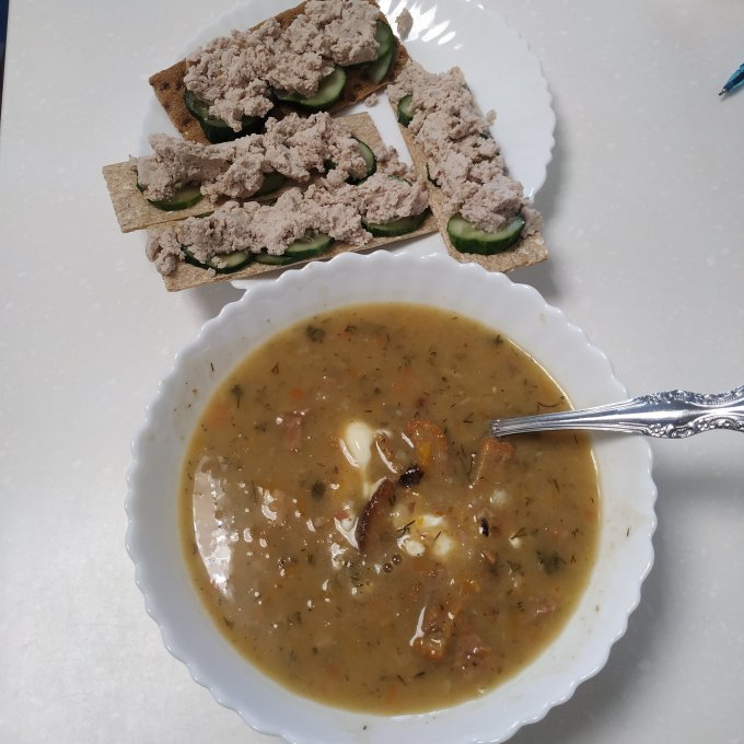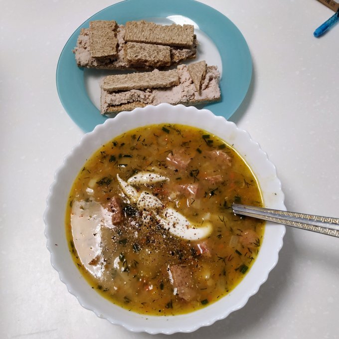 | Суп крестьянский с горохом, перловой, с ветчиной |