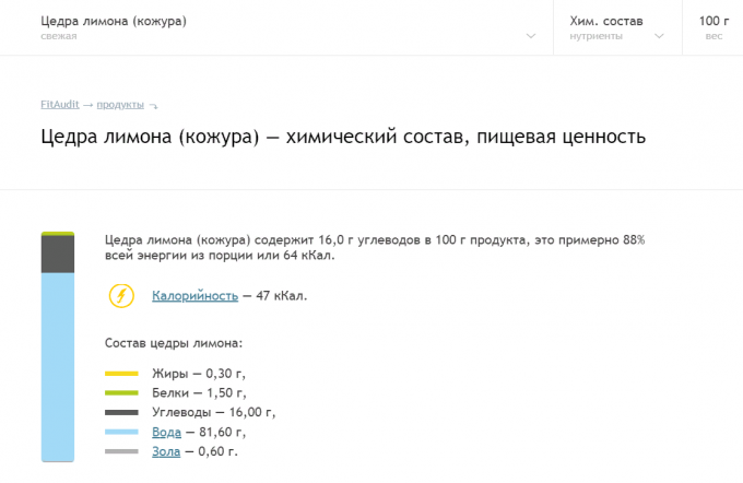Нигде не могу найти калорийность кожуры мандарина (апельсин и лимон