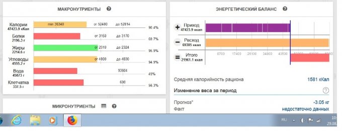 Средняя суточная калорийность рациона за период составила 2175