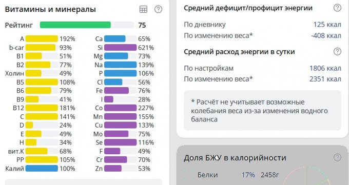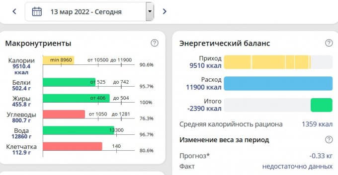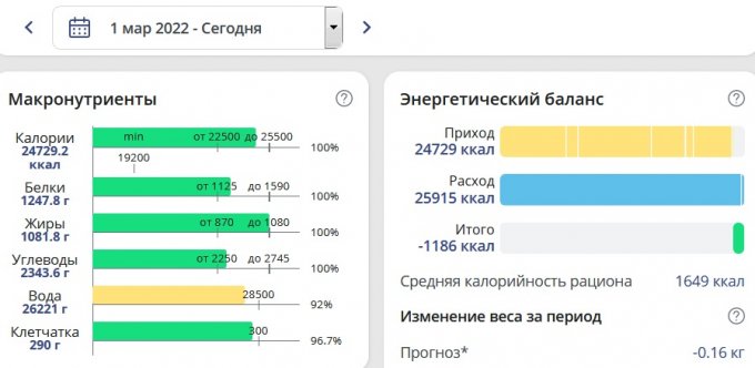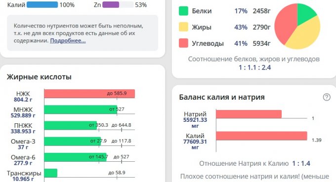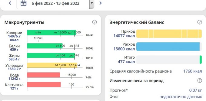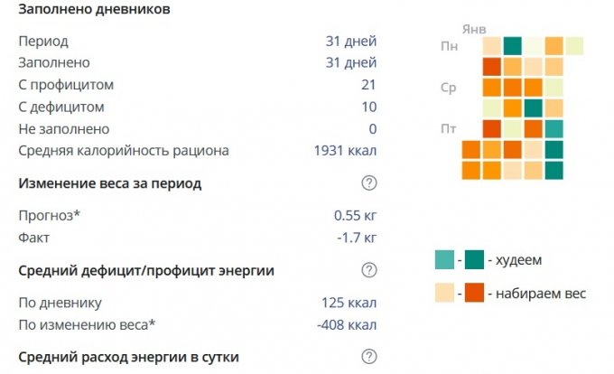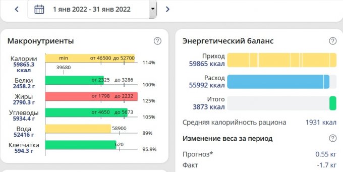 были с дефицитом килокалорий. Избыток жиров и ккал в месячном