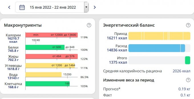 | Итого за день | 2052 | 1494 | 80 | 53 | 170 |