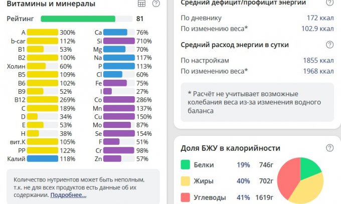 | Итого за день | 2652 | 1712 | 88 | 79 | 152 |