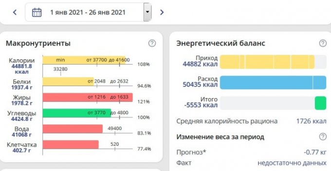 | Итого за день | 1070 | 1443 | 45 | 68 | 141 |