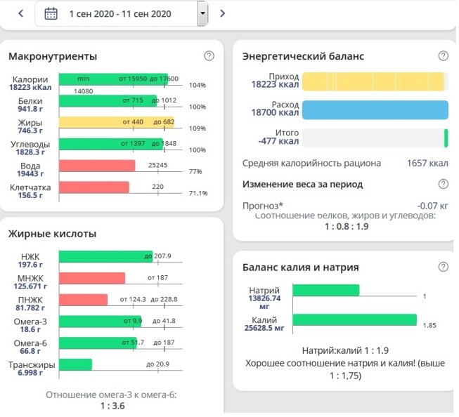 | Итого за день | 1830 | 1433 | 55 | 44 | 164 |