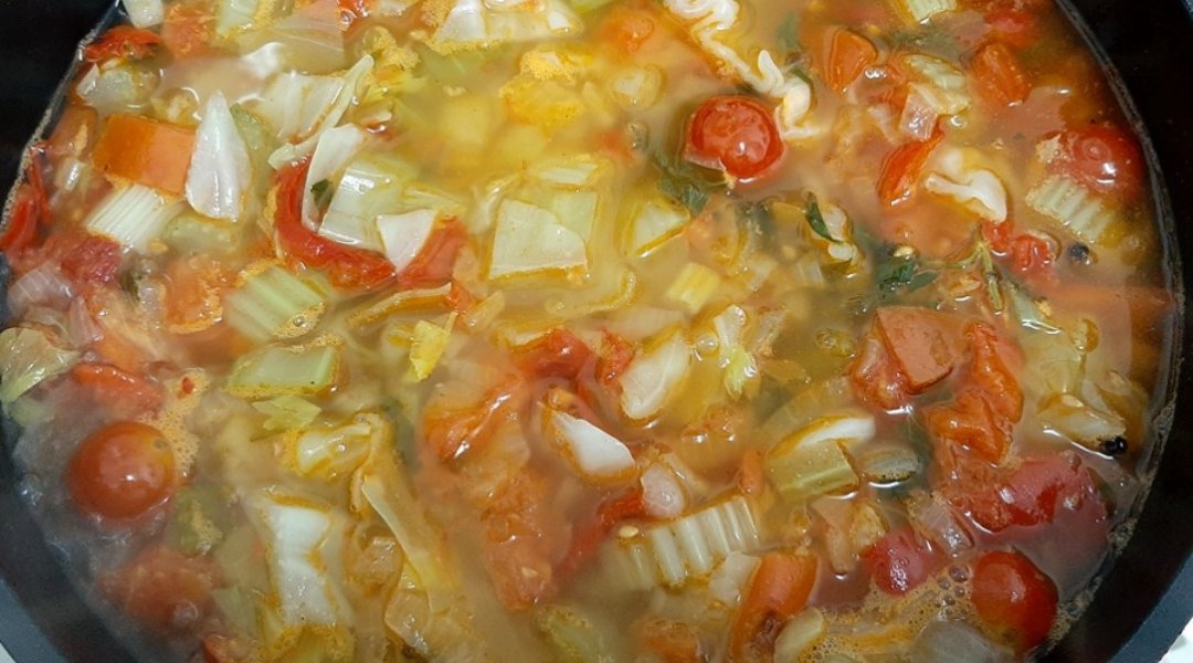Когда капуста и сельдерей сварятся до полуготовности (минут 20) соединяю с потушенными овощами. Солим, перчим красным острым перцем добавляя по чуть-чуть. Нужно добиться чтоб острота хорошо ощущалась. Щи должны быть острыми и жгучими, но настолько, чтоб можно было их есть. После соединения всех продуктов, накрываю крышкой и еще минут 20-30 до состояния мягкости капусты и сельдерея.