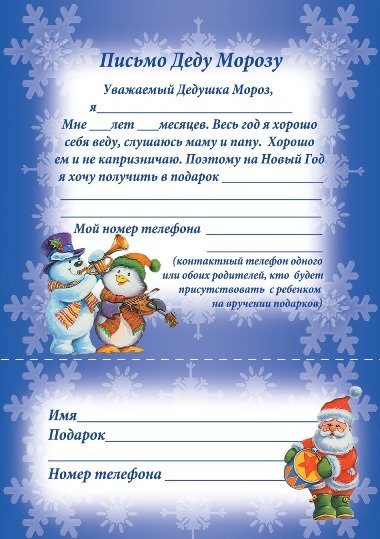 Всех с праздником !!!                                                      4 декабря - праздник день написания писем Деду Морозу.   Хороший, нужно сказать праздник, просто замечательный..  поделиться своими сокровенными желаниями, попросить и ожидать подарка..запустить свою мечту в действие.. у меня накопилось мечт достаточно и судя по дневнику вела себя весь год хорошо,  можно надеяться на подарок.. прикладываю бланк,  кто любитель  он-лайн переписки, можно на сайте оставить свои пожелания  и там же можно найти адрес адресата для почтовых писем  почта Деда Морза