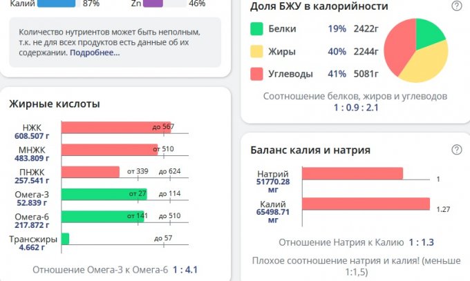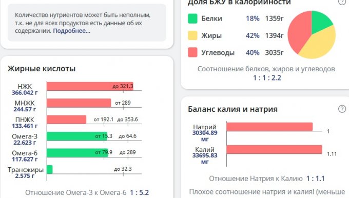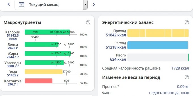 не выдержала я этот месяц как предыдущий, нет положительных результатов. только отрицательные.  Вес прибыл почти на килограмм, и живот опять вырос. Так же по утрам опять отекать стала.  т.к. по вечерам сладости ела. Жиры и калории в этом месяце немного больше нормы .  Средне дневной калораж увеличился на 36 Ккал,  вроде не много, а результат виден на боках и животе.  легкости не испытываю в теле.  на последней неделе начала снова пить уксус по утрам.   постараюсь контролировать размер порций, а то начала увеличивать их.  Из положительного соотношение калий-натрий  улучшилось не намного в пользу калия.   По ощущениям  в прошлом месяце я летала, чувствовала легкость и люди замечали, что я уменьшаюсь,  в этом месяце тяжесть в теле и ощущения дискомфорта.  Постараюсь вернуться к ощущениям марта и отказаться от вечерних перекусов
