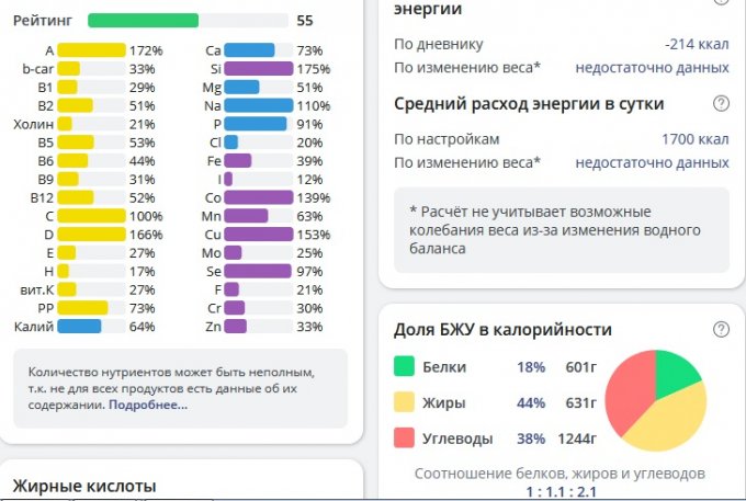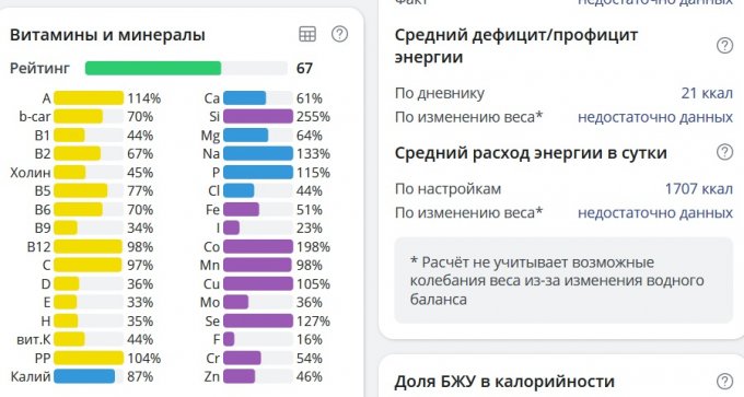Чтобы увидеть отчеты по питанию и график веса, необходимо войти.