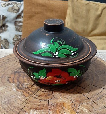 купила себе горшок глиняный ручной работы  для приготовления в духовке. Давно хотела такой, чтоб не большой и не маленький средненького размера на 2-3 порции. Уже попробовала в нем приготовить тушеное мясо.  Удобно . Все покидал в него и в духовку - горшочек вари.   и на стол потом сразу в нем подавать - эстетично получается. Осталась довольна. Начну экспериментировать с разными блюдами в горшке. Хочу теперь гурьевскую кашу попробовать приготовить. буду собирать рецепты блюд приготовленных в горшках