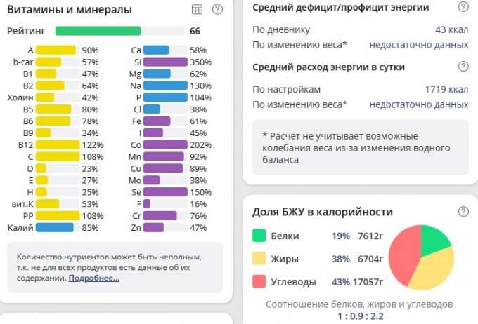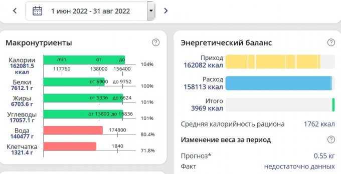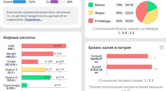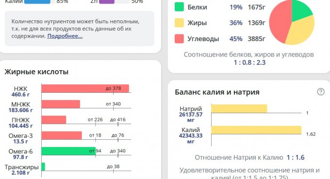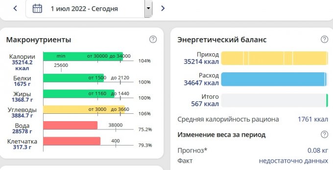 | Итого за день | 2208 | 1630 | 75 | 60 | 194 |