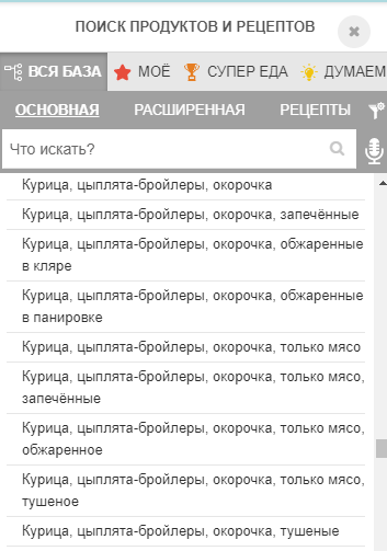 "Курица, цыплята-бройлеры, темное мясо, обжаренное" и "Курица, цыплята-бройлеры, окорочка, только мясо, обжаренное" и так понимаю мясо без костей в обоих случаях.