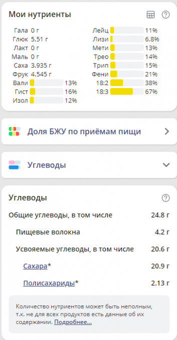 | Кол-во | Калории | Белки | Жиры | Углеводы | |