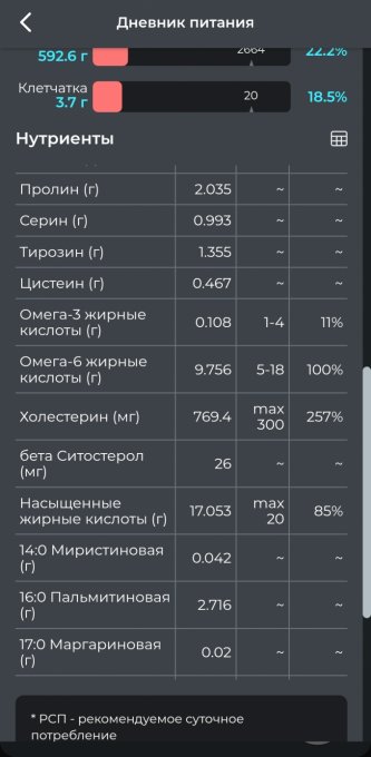 | Итого за день | 780 | 1050 | 55 | 84 | 28 |