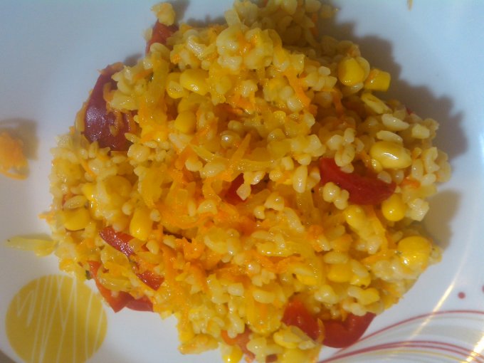 его необходимо обжарить с ингредиентами и затем залить водой. У нас