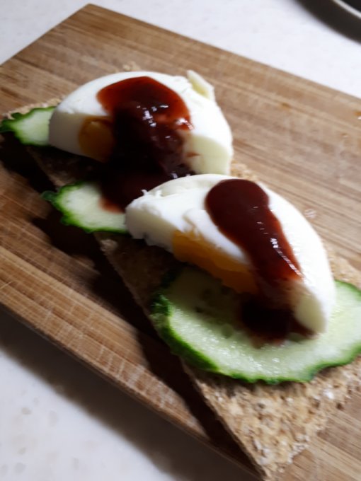 ровненькое легло в тарелку. Желток сделала пожиже, самое оно!) Вот