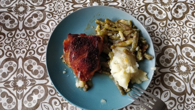 | Курица, цыплята-бройлеры, бедро, только мясо, запечённая |