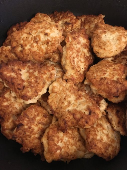 Грудка куриная - 693 г Лук репчатый - 84 г Чеснок - 10 г Яйцо - 1 шт Соль, перец черный по вкусу. Грудку помыть,просушить.Нарезать мелко.В нее добавить Лук,можно мелко его порезать и чеснок.Вбить 1 яйцо,соль,перец.Все перемешиваем.Выкладываем на разогретую сковородку небольшими порциями,у меня без масла можно жарить.Накрываем сразу крышкой.Через 5 мин переворачиваем и тушим под крышкой до готовности.