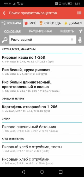 | Рис белый, крупа рисовая (Варка без слива рассыпчатая) |