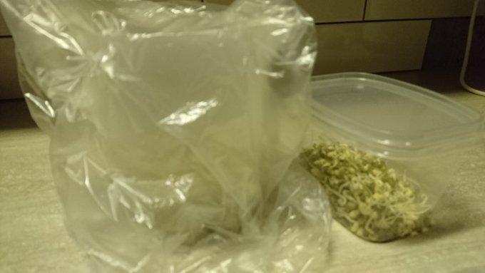 Зернышки набухли. Я забыла их взвесить, но к вечеру они будут
