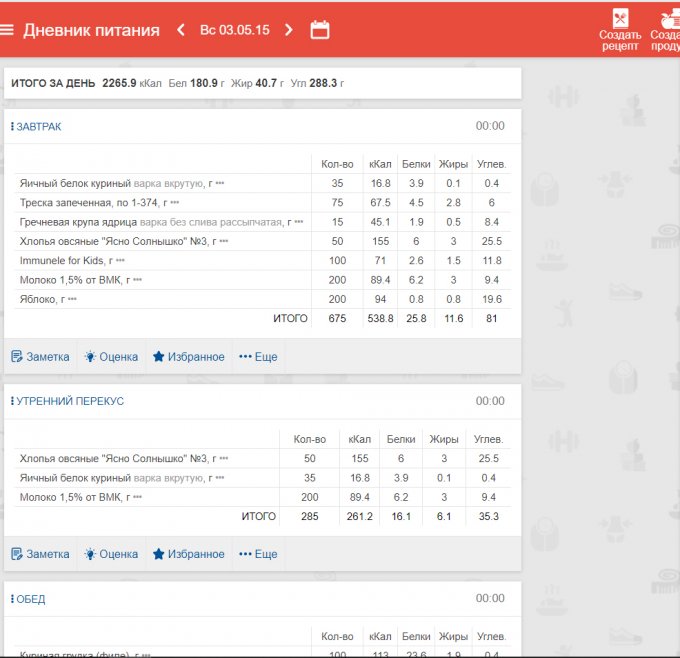 У нас с женой примерно один рацион, за исключением некоторых ингредиентов.